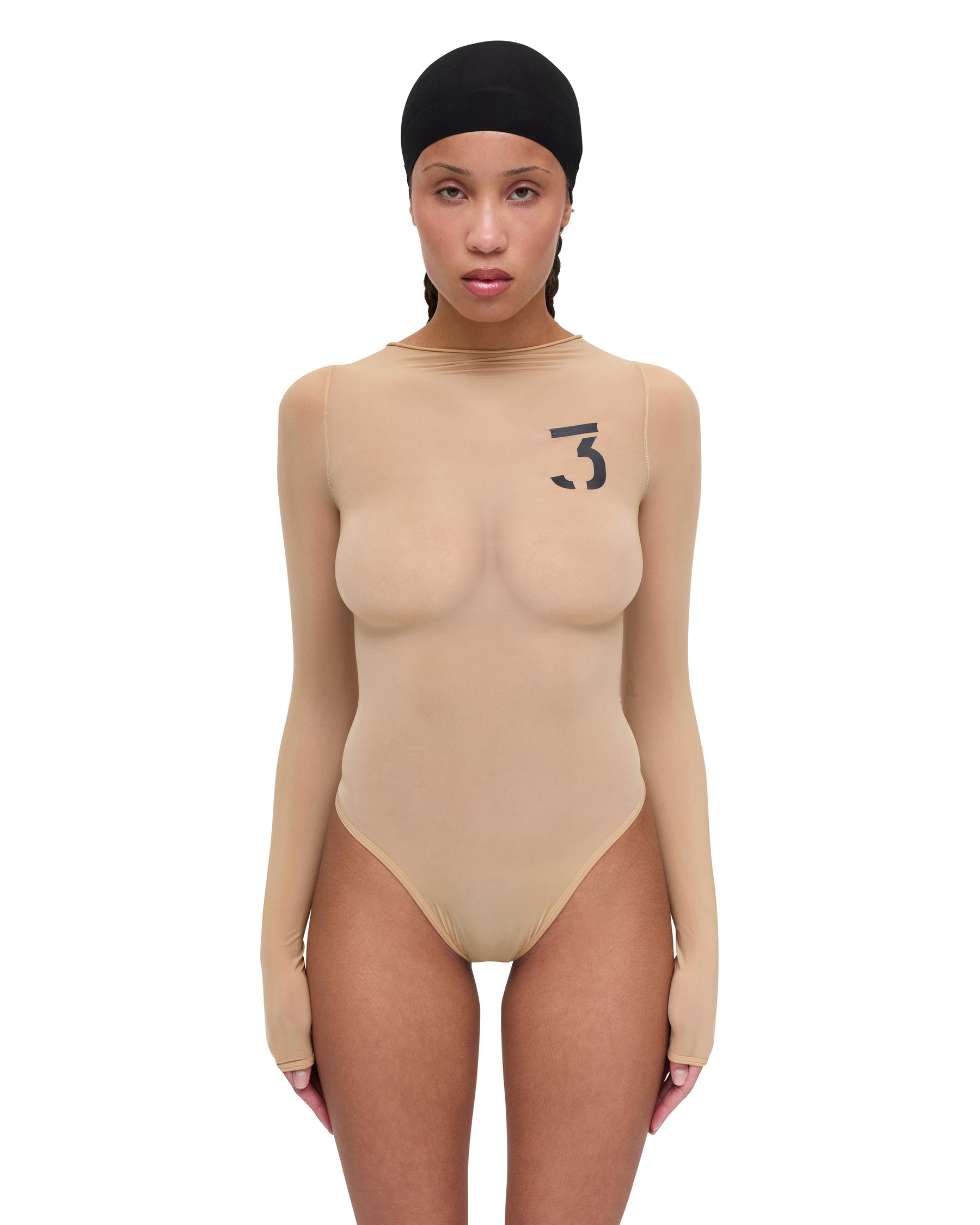 NoSceneGirls #3 Long Sleeve Bodysuit in Nude