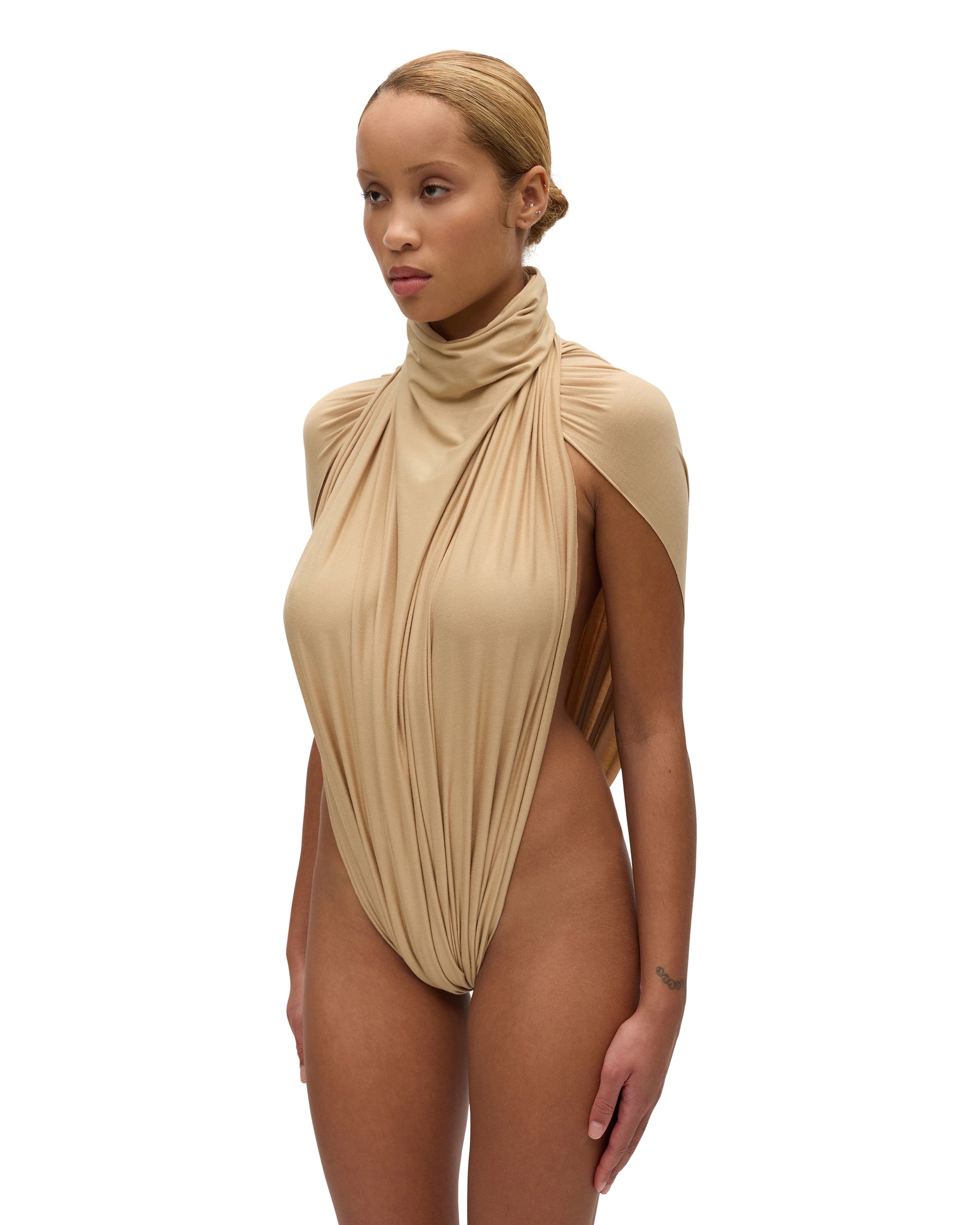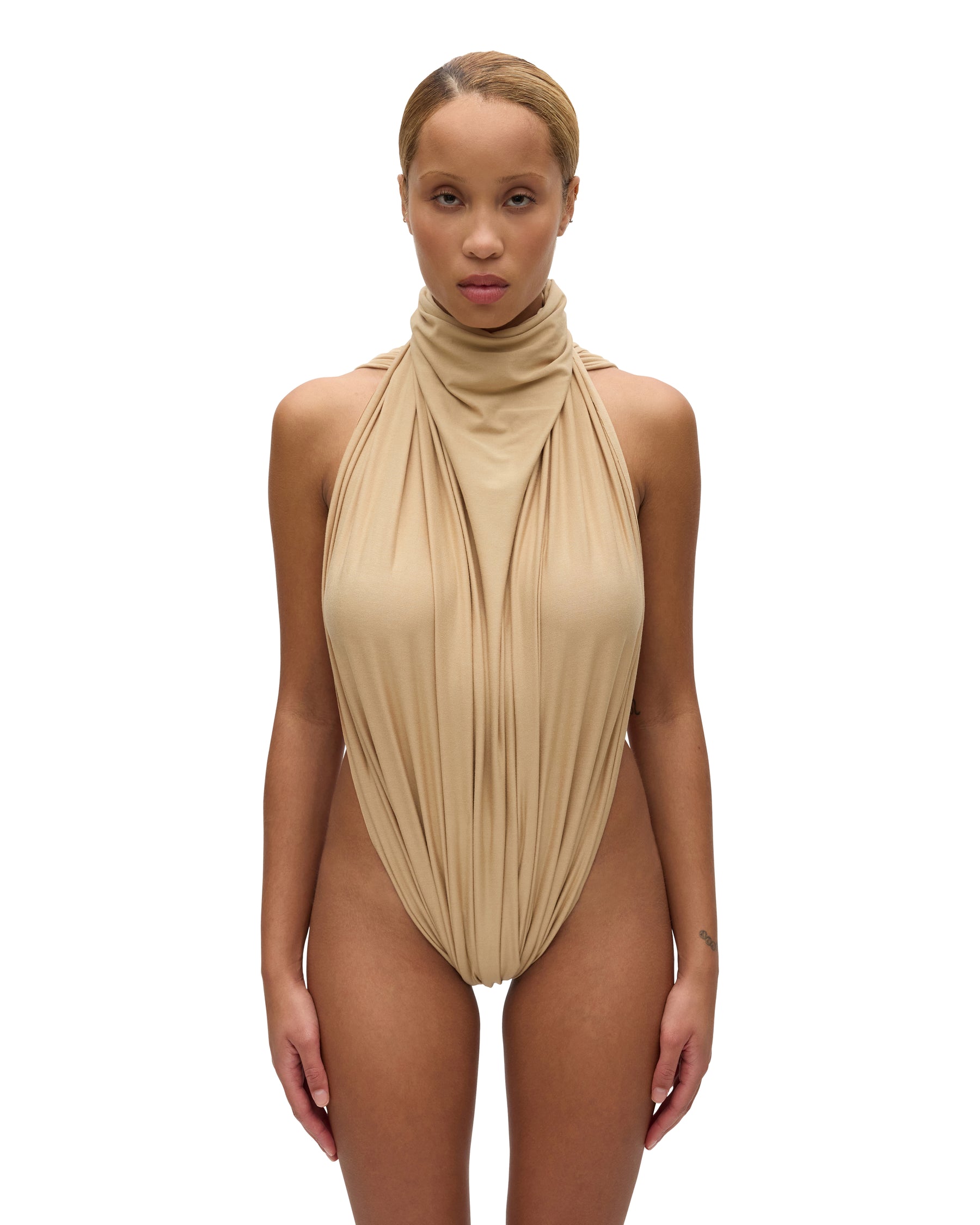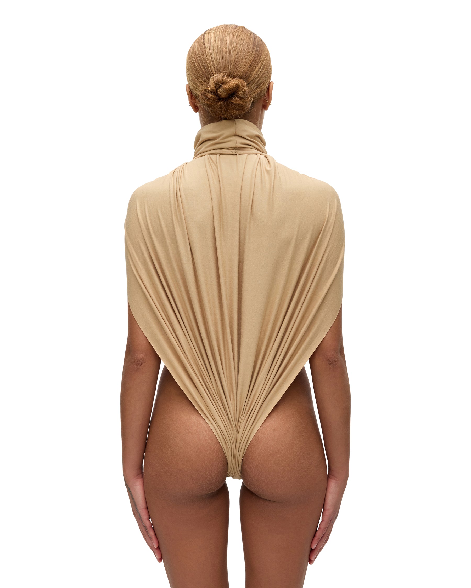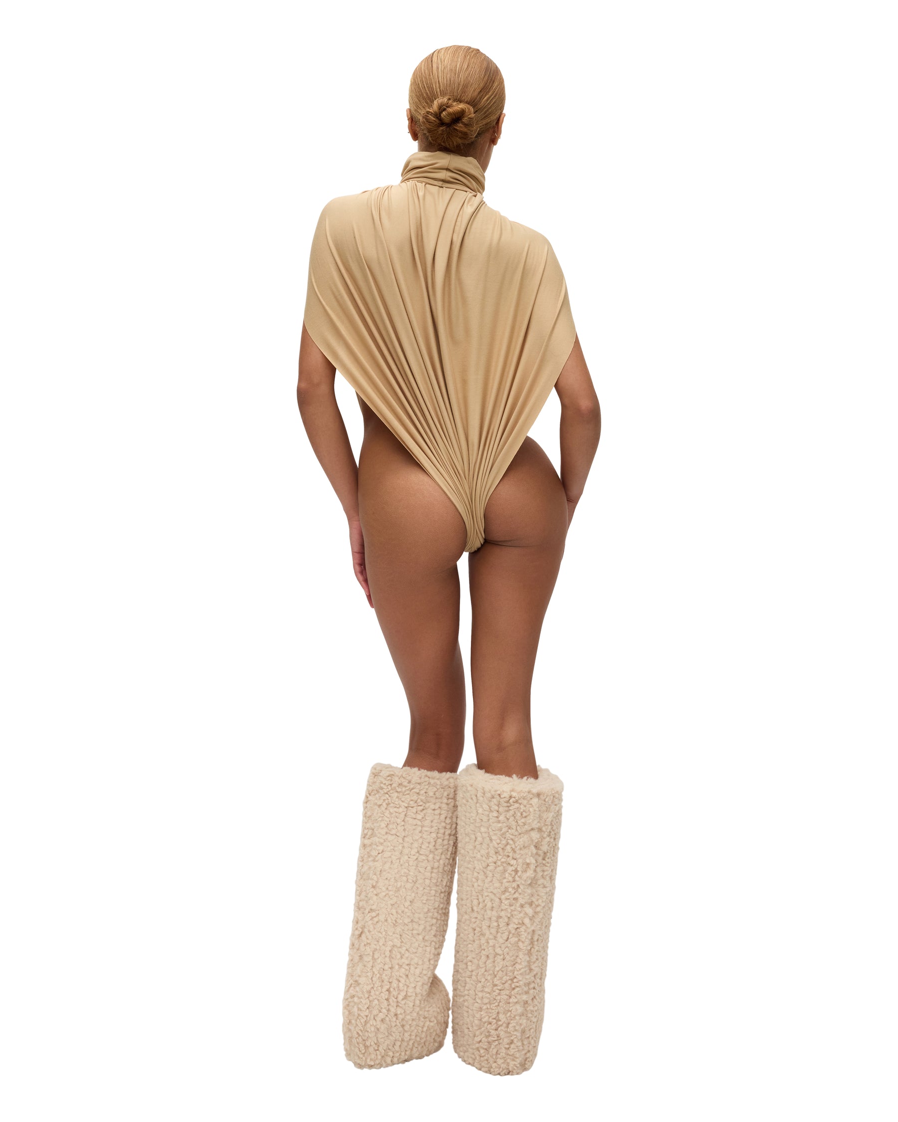 NoSceneGirls Over Shoulder Bodysuit in Beige