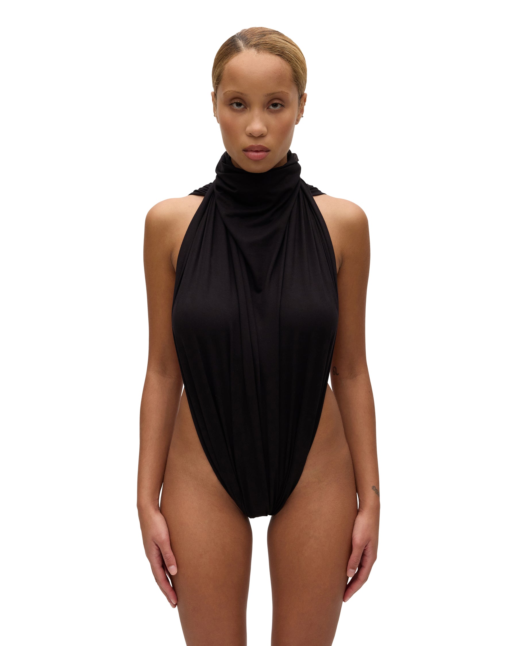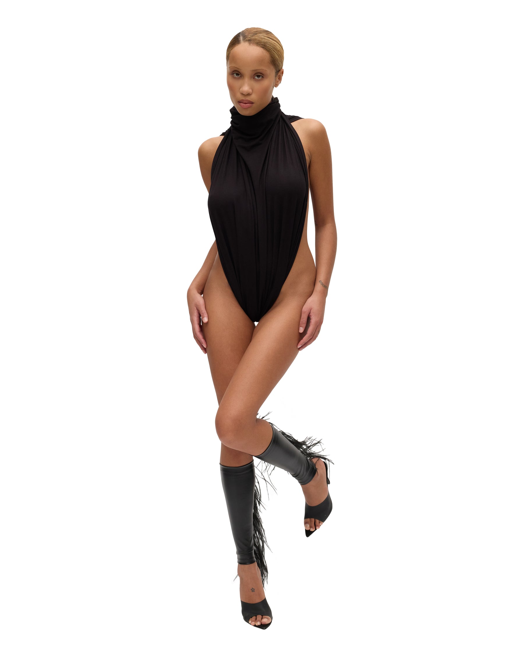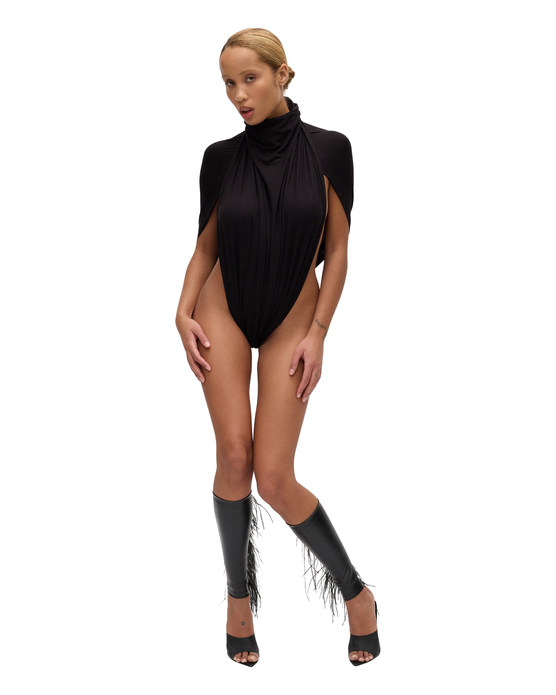 NoSceneGirls Over Shoulder Bodysuit in Black